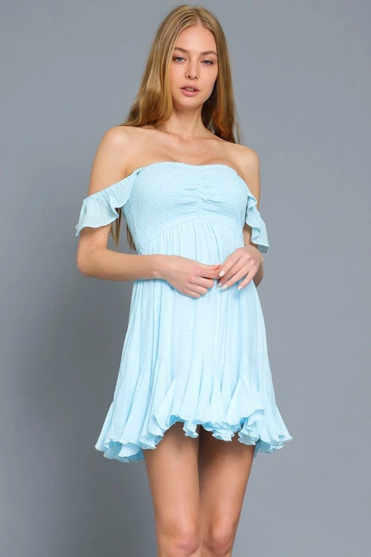 TUBE RUFFLE HAM DETAILING MINI DRESS SELF- 65%POLY 35%RAYON LINING-100%POLY.