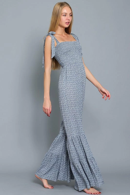 Aakaa Jumpsuits The Layla Blue Printed Tie Jumpsuit