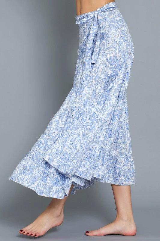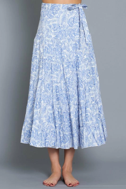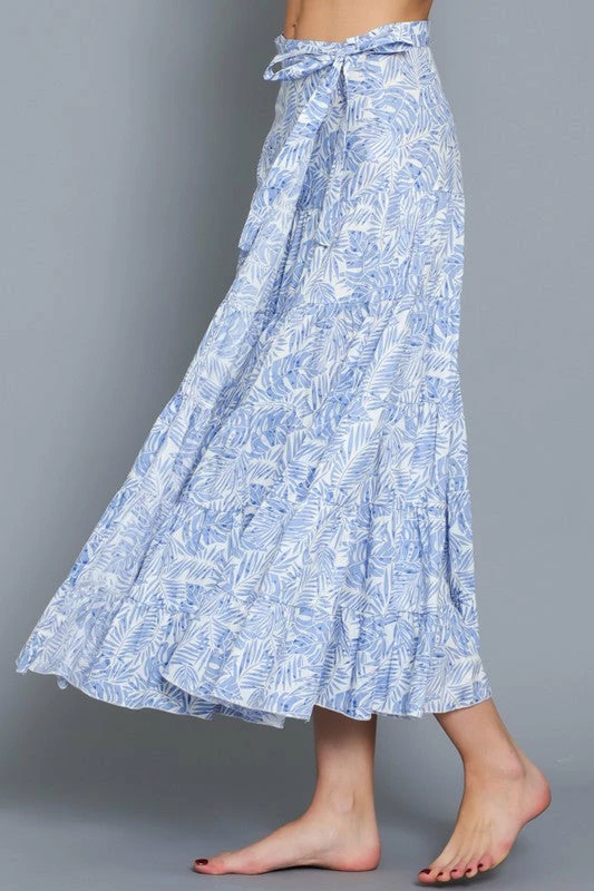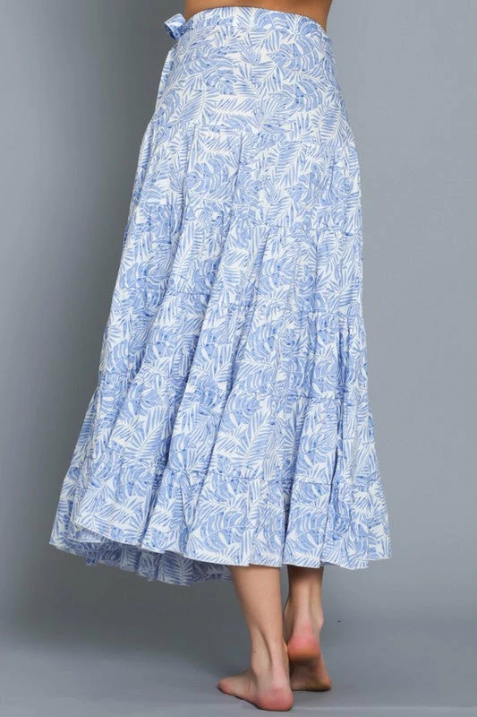 Aakaa The Let’s Get Away Blue & White Floral Wrap Midi Skirt