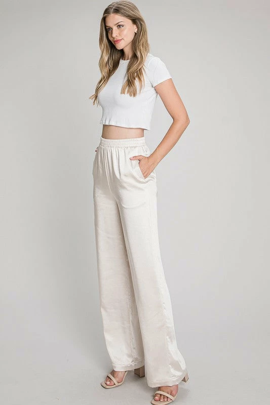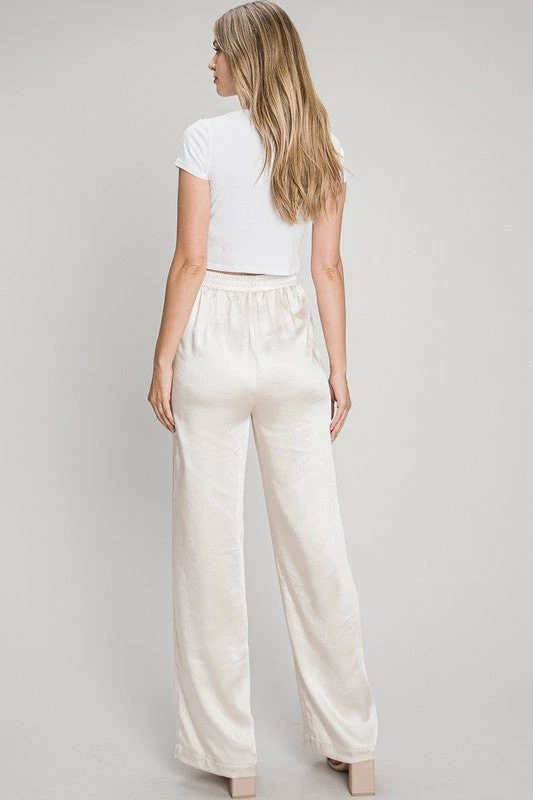 Allie Rose The Sierra Cream Satin Wide Leg Pants