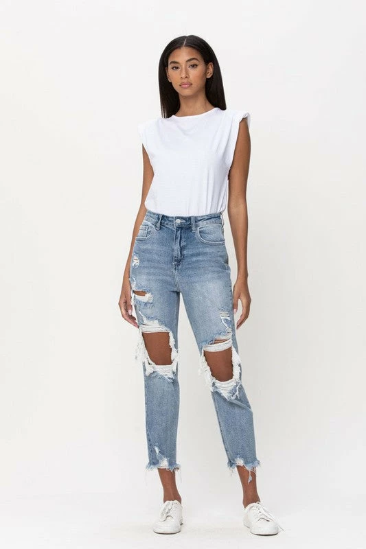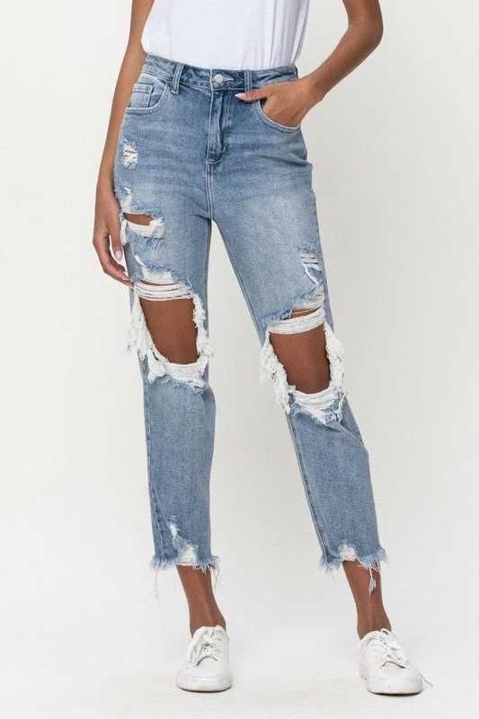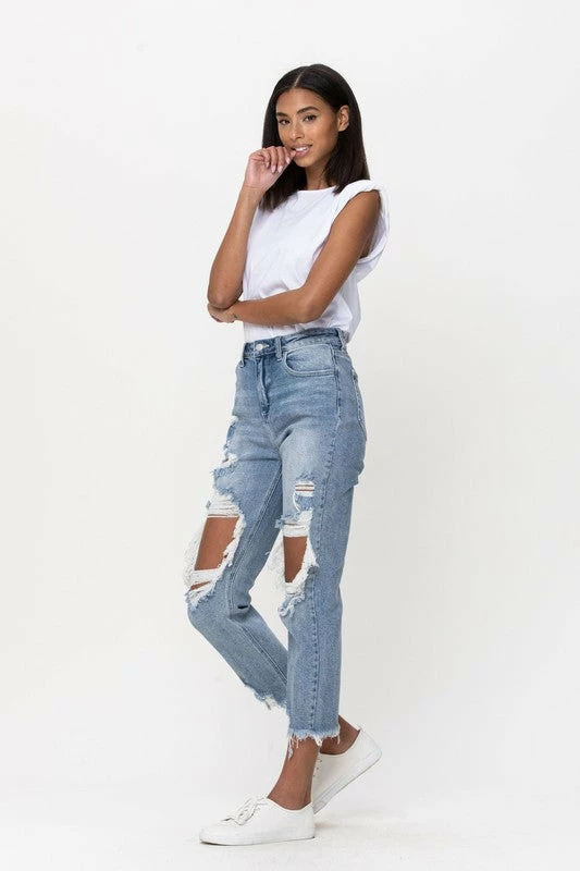 Cello The Charlotte High Rise Distress Light Blue Crop Straight Jeans