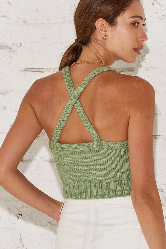 Crescent The Agatha Fern Two Piece Cropped Knit Tank & Cardigan Set Tops