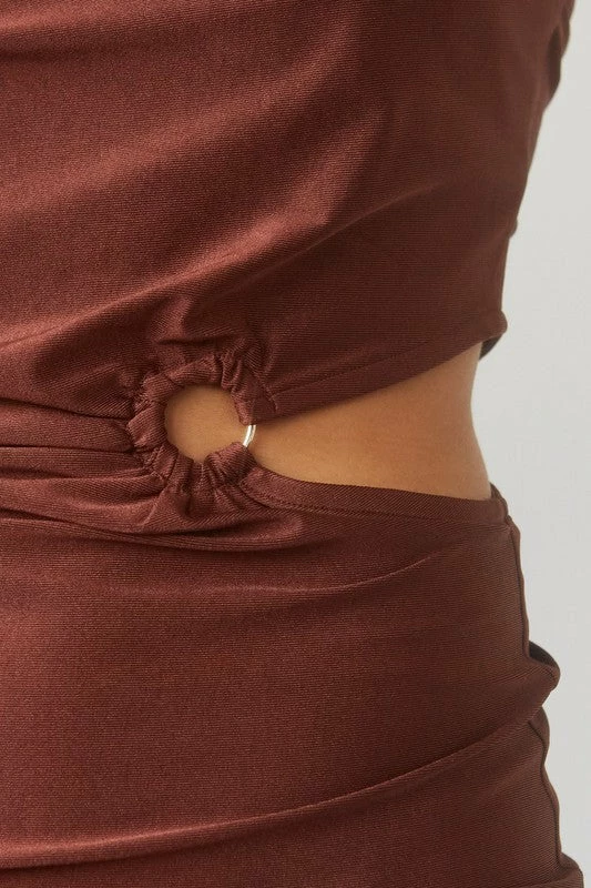 Crescent The Jordan Chocolate Brown Ruched Mini Dress