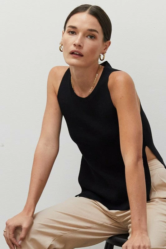 Crescent Tops The Gianna Side-Slit Sleeveless Knit Top