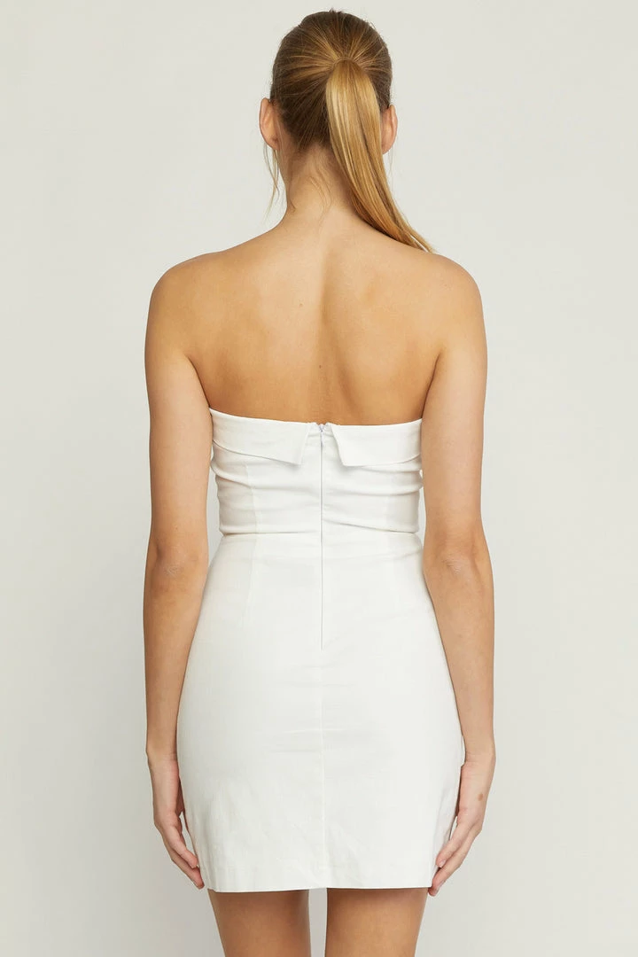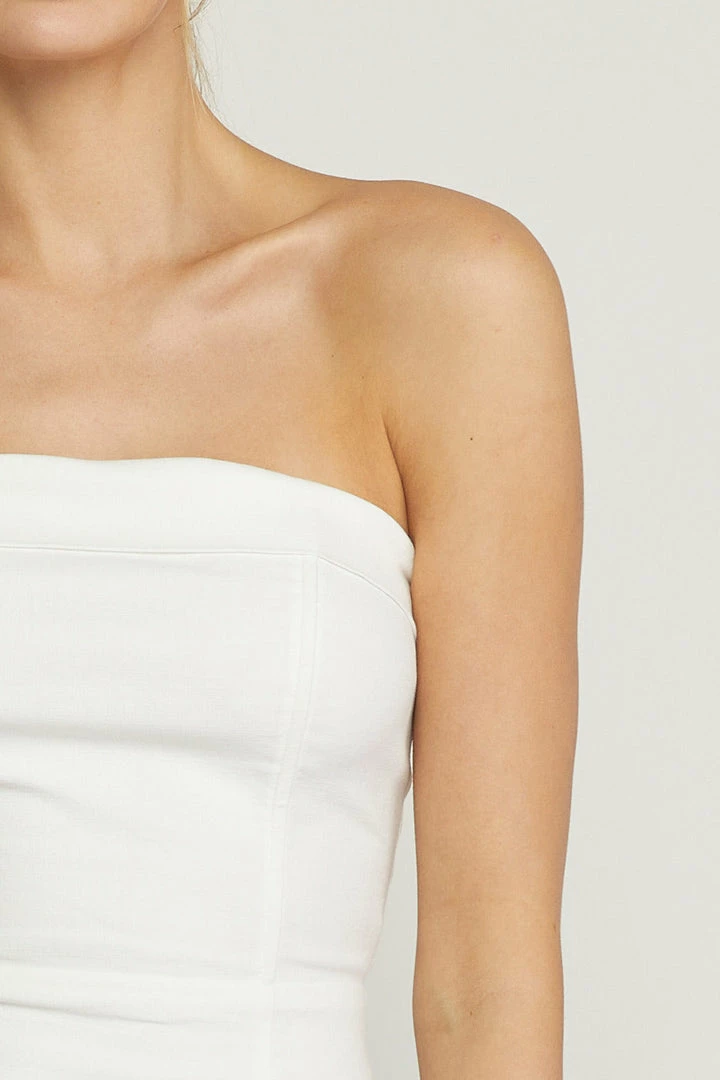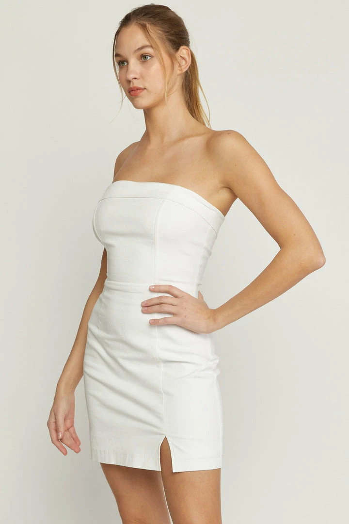 Solid tube mini dress featuring front slit. Invisible zipper at back. Lined. Woven. Non-sheer. Lightweight.