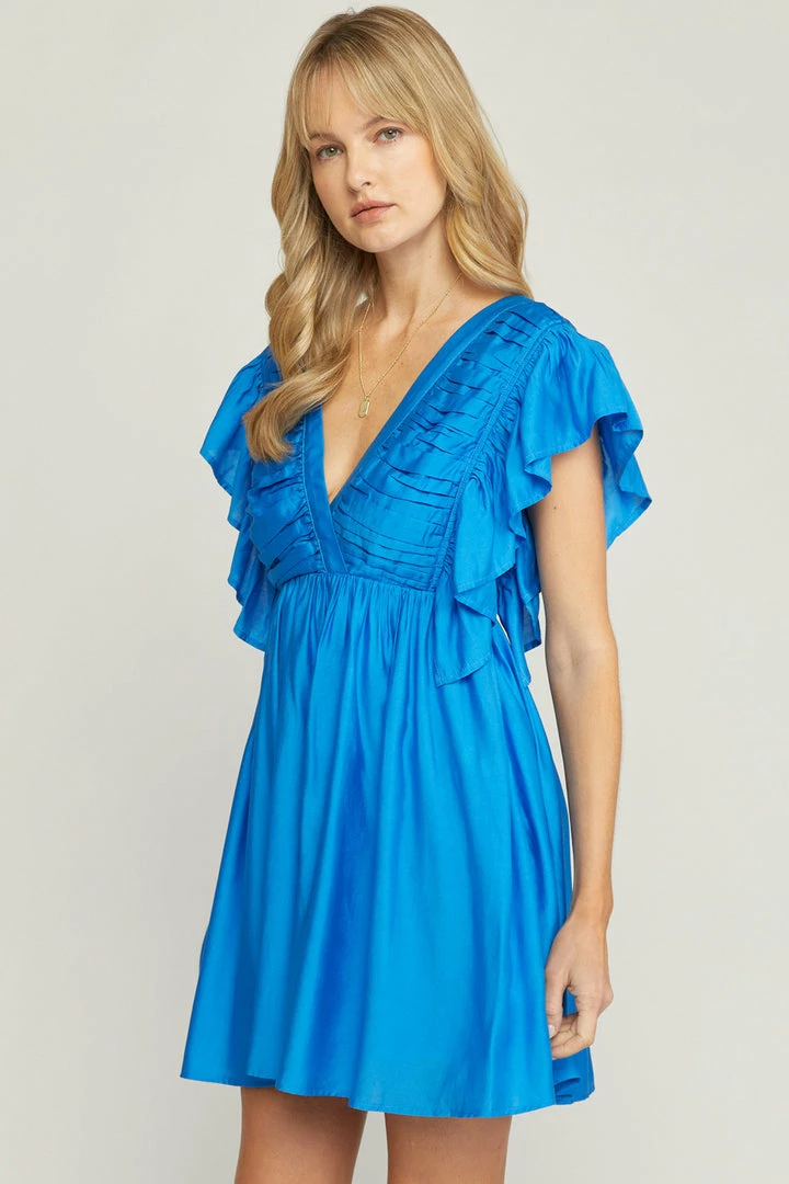 Entro Dresses The Kaitlyn Royal Blue Flutter Sleeve Mini Dress