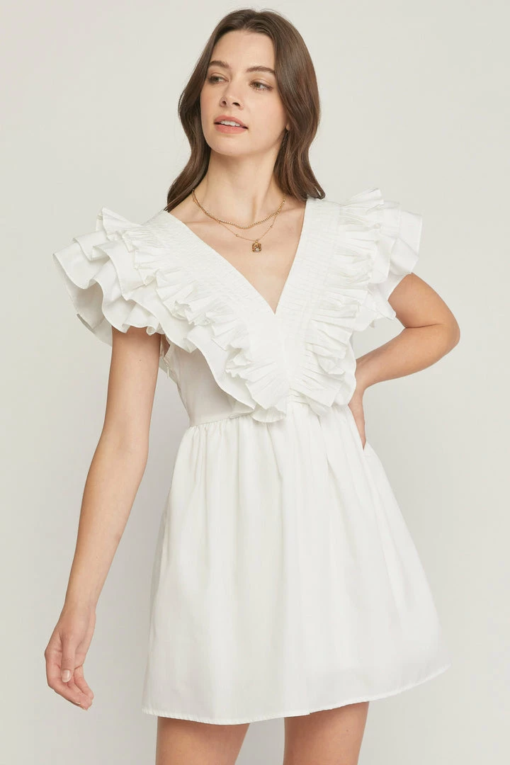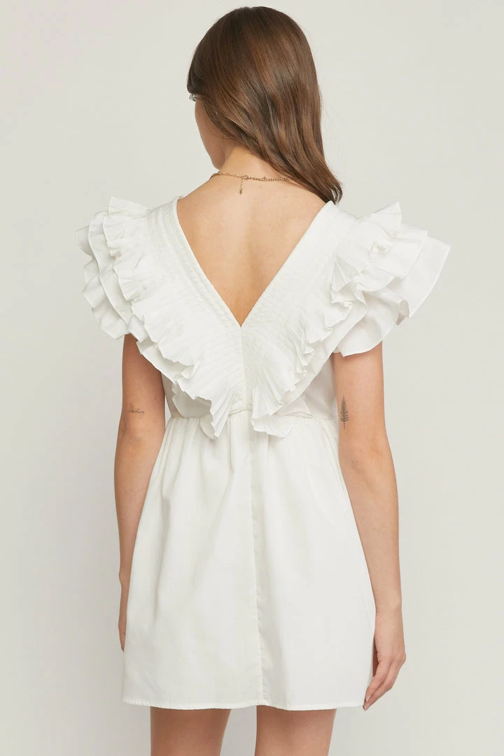 Entro Dresses The Kristen V-Neck Ruffle Sleeve Mini Dress