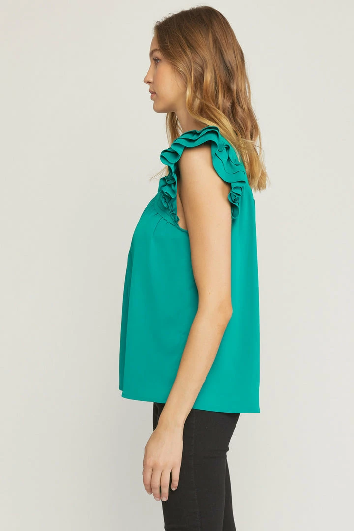 Be the first to review “Entro The Caper Kelly Green Ruffled Collar Top” Cancel reply
