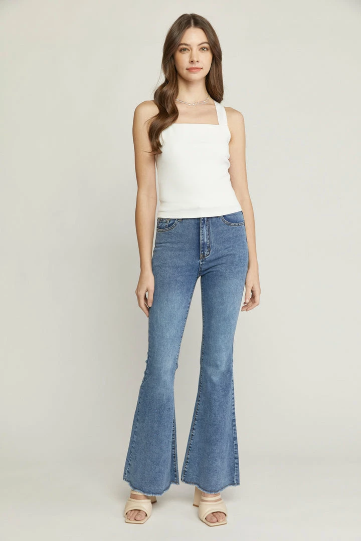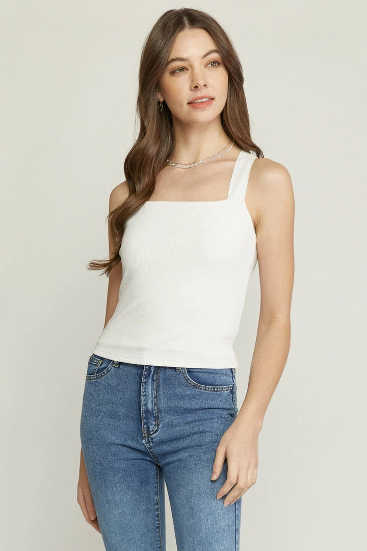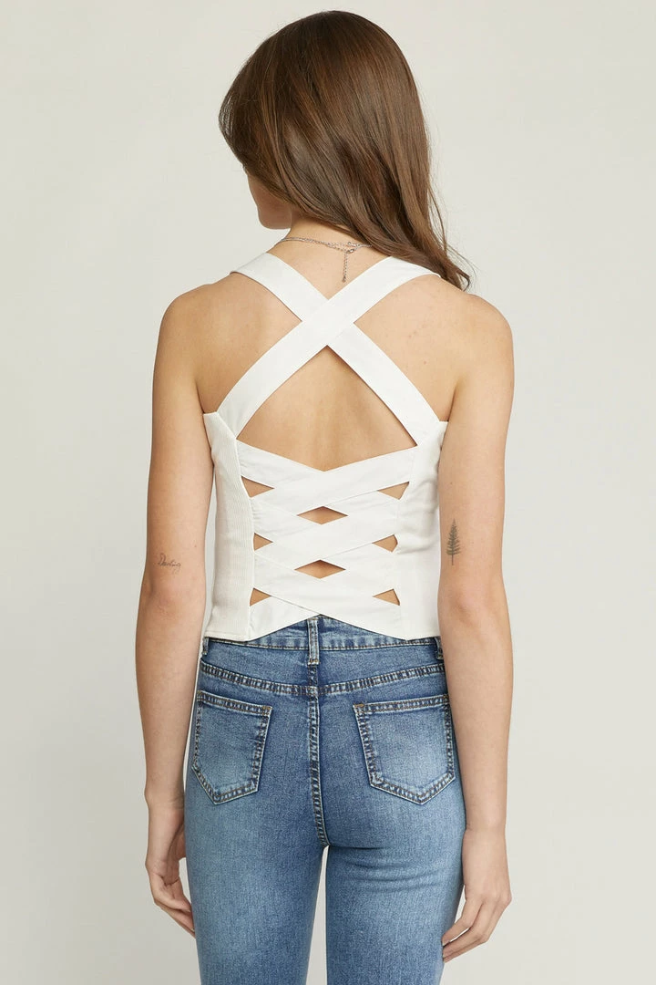 Entro The Fiona White Criss-Cross Back Sleeveless Tank Top Tops