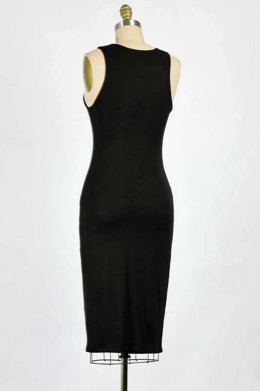 The Brinley Black Basic Knit Bodycon Midi Dress.