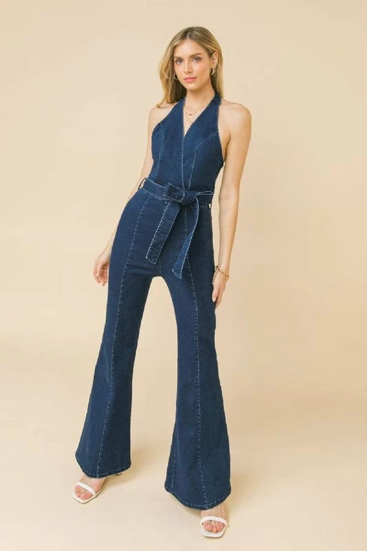 Flying Tomato The Charlotte Denim Halter Jumpsuit Jumpsuits