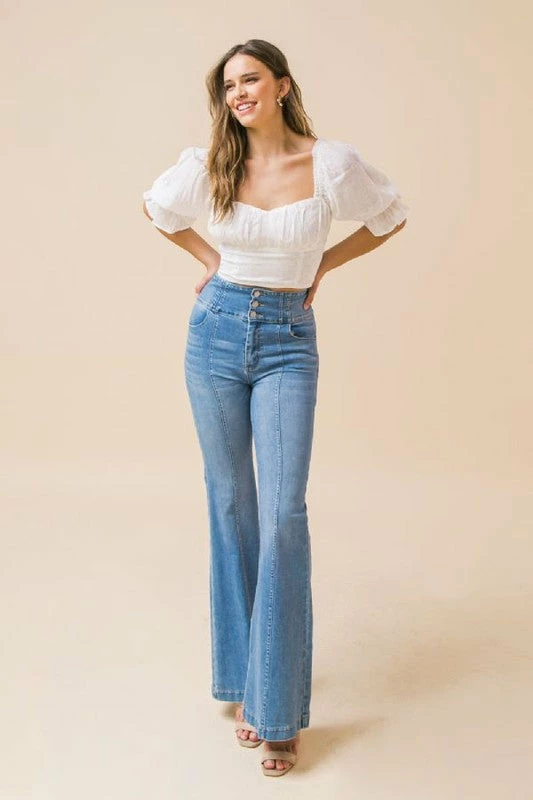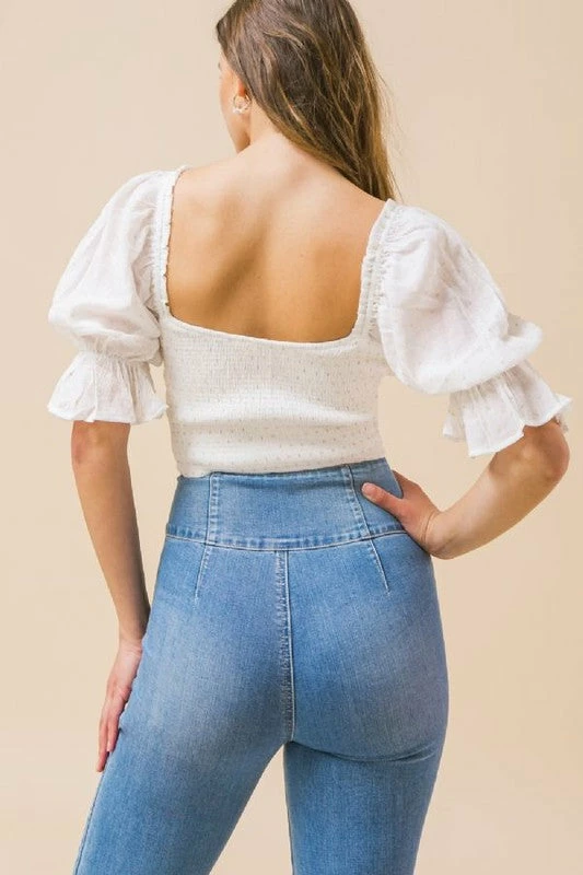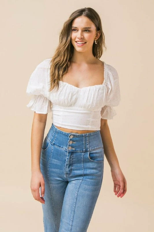 Flying Tomato The La Jolla Ivory Puff Sleeve Cropped Top
