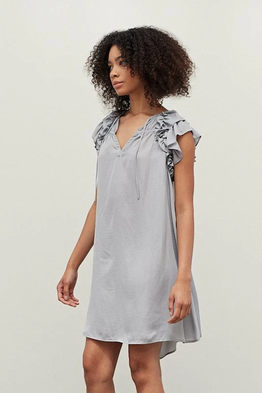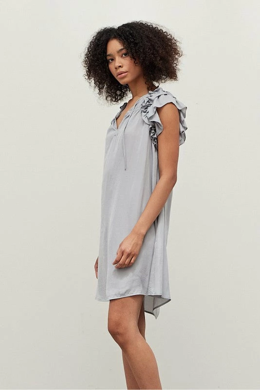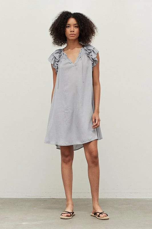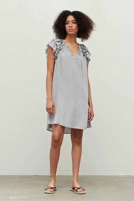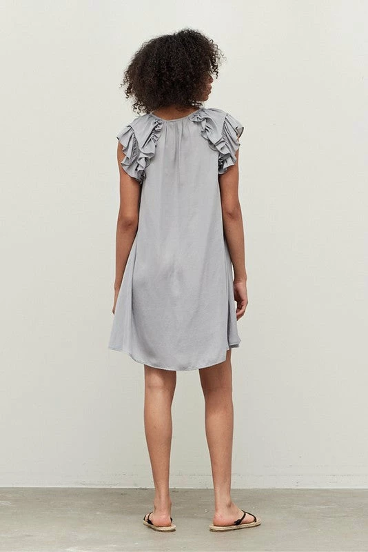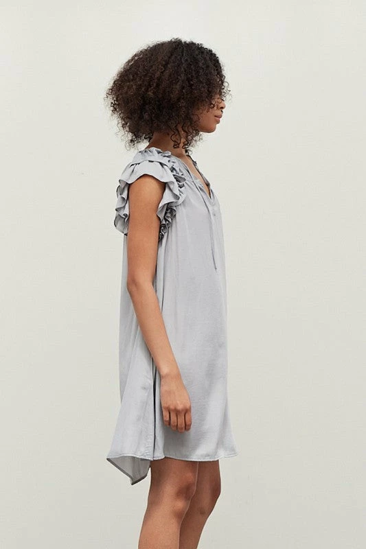 Grade & Gather Dresses The Morning Mist Ruffle Shoulder Mini Dress