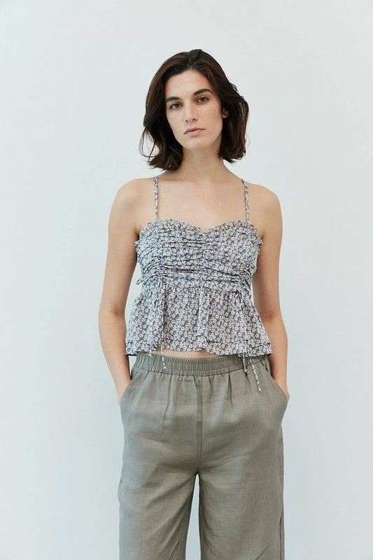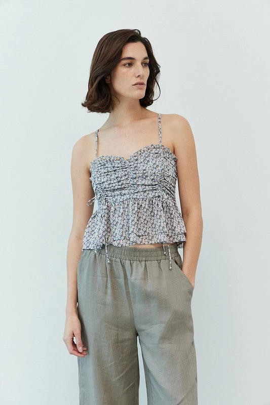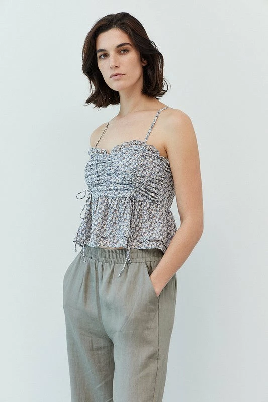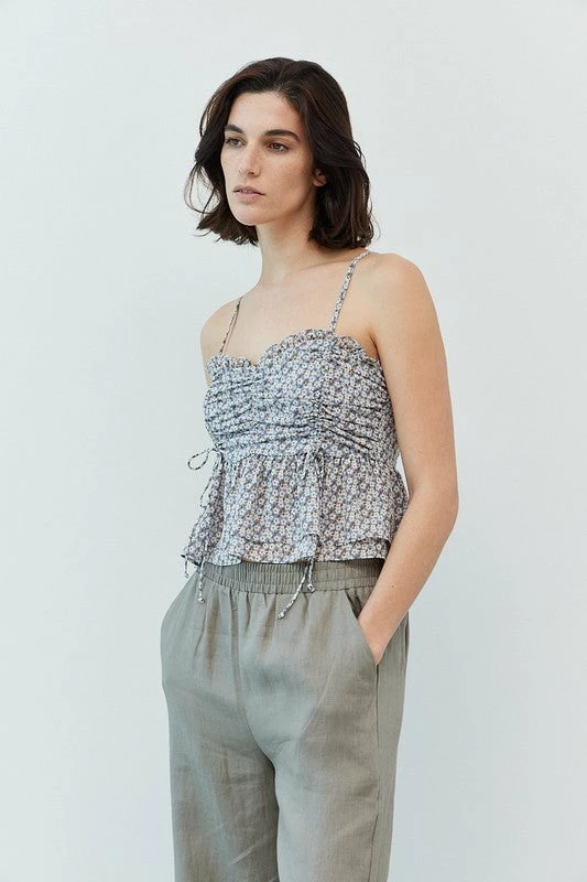 The Peyton Marina Blue Floral Print Ruched Tank Top