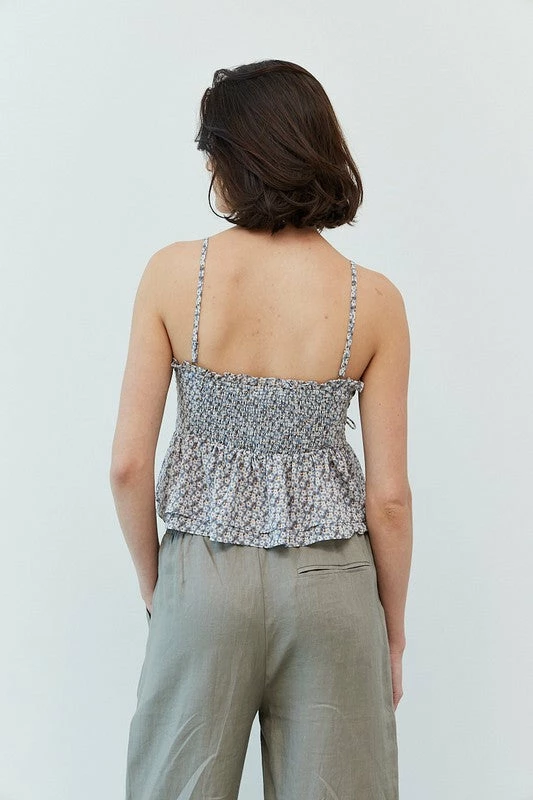 Grade & Gather The Peyton Marina Blue Floral Print Ruched Tank Top Tops
