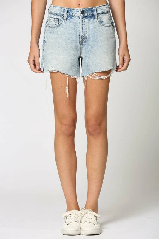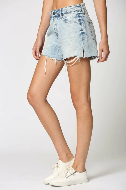 Hidden Jeans The Harlow Light Wash Classic Side Slit Mom Shorts