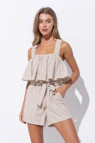 Sleeveless Crop Top With Square Neck 40%Linen 60% Cotton. Perfect match with The San Clemente Striped Shorts.
