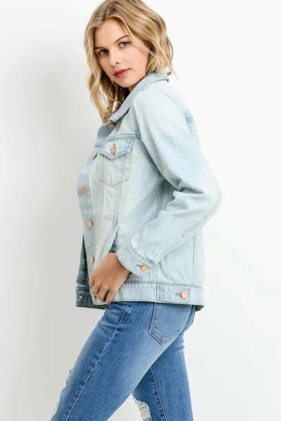 Just USA The Greta Light Wash Boyfriend Jean Jacket Tops