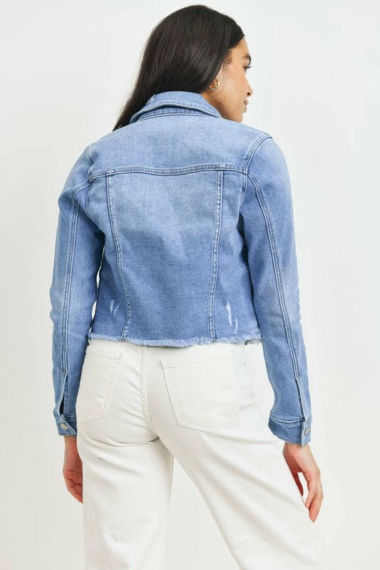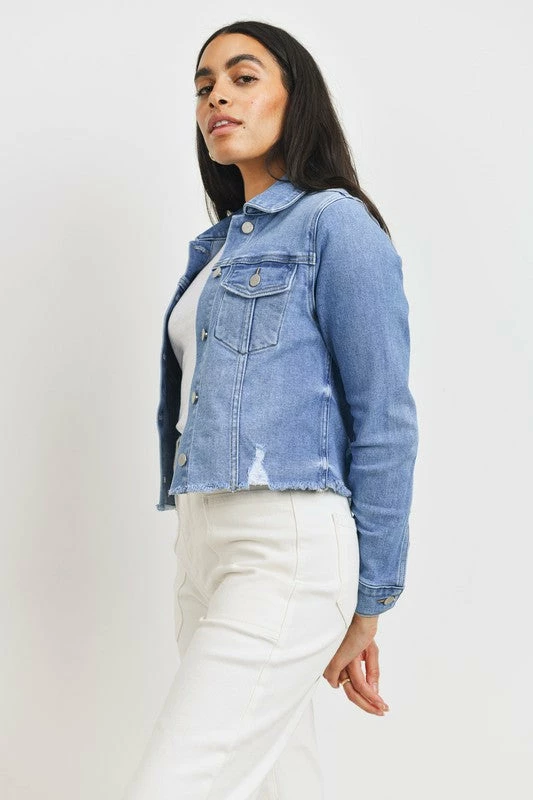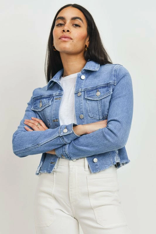 Just USA The Jokayla Light Wash Raw Hem Denim Jacket Tops