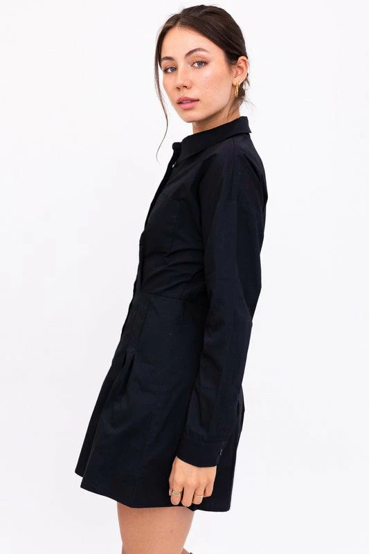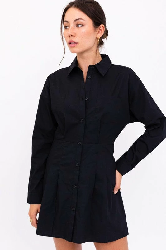 Le Lis The Brita Black Pleated Shirt Mini Dress