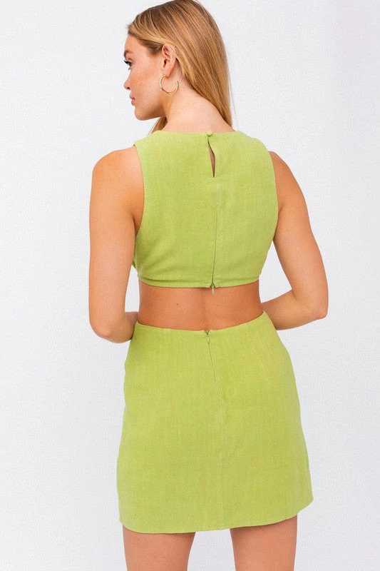 Le Lis The Charmaine Green Linen Cutout Mini Dress