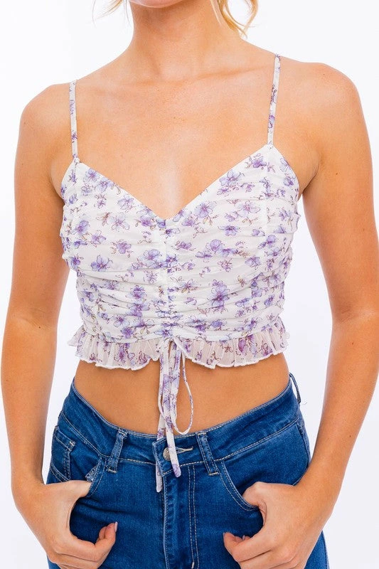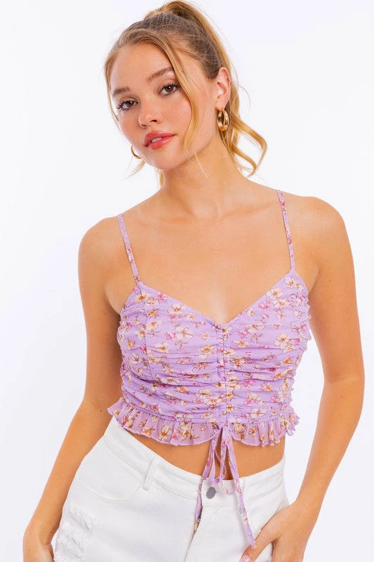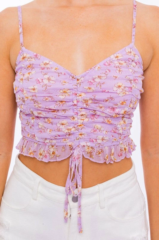 Le Lis The Field Of Flowers Mesh Ruched Cropped Tank