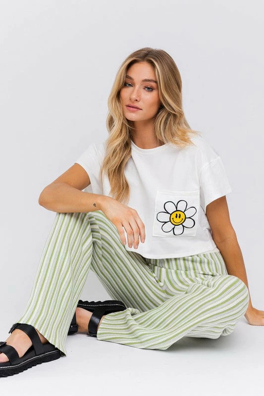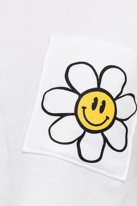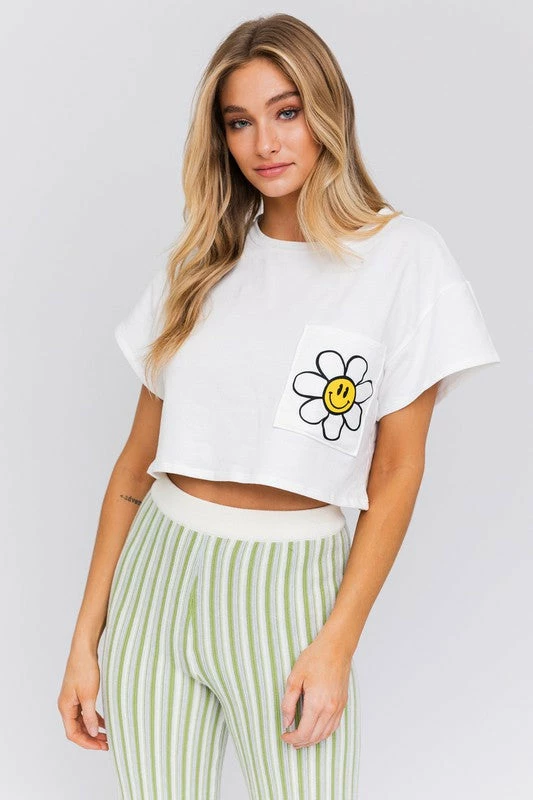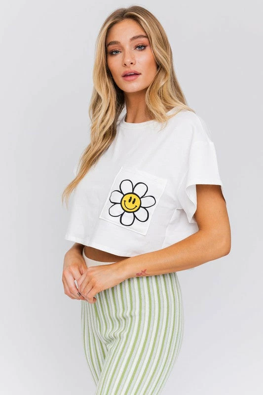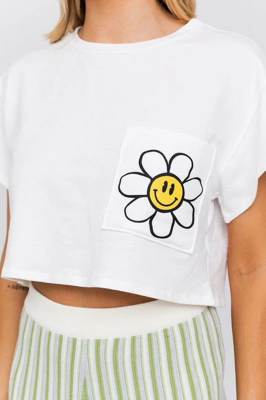 Le Lis The Smiley Daisy White Cropped Pocket Tee Tops
