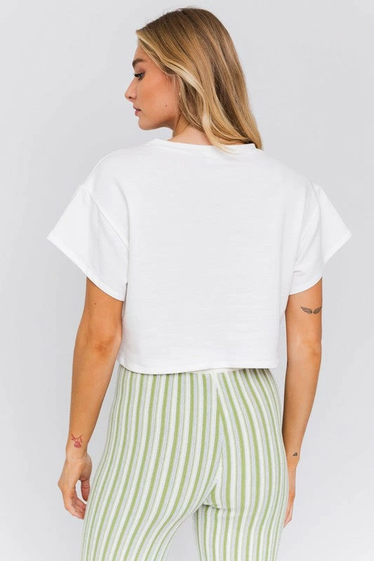 Be the first to review “Le Lis The Smiley Daisy White Cropped Pocket Tee Tops” Cancel reply