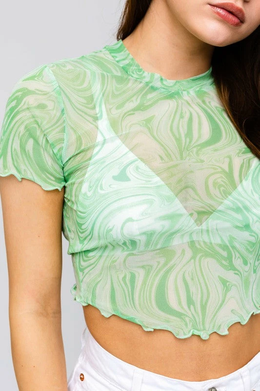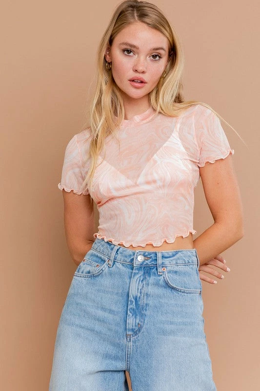 Le Lis Tops The New Wave Short Sleeve Mesh Crop Top