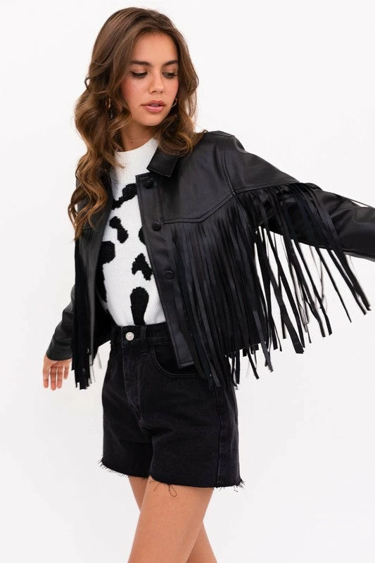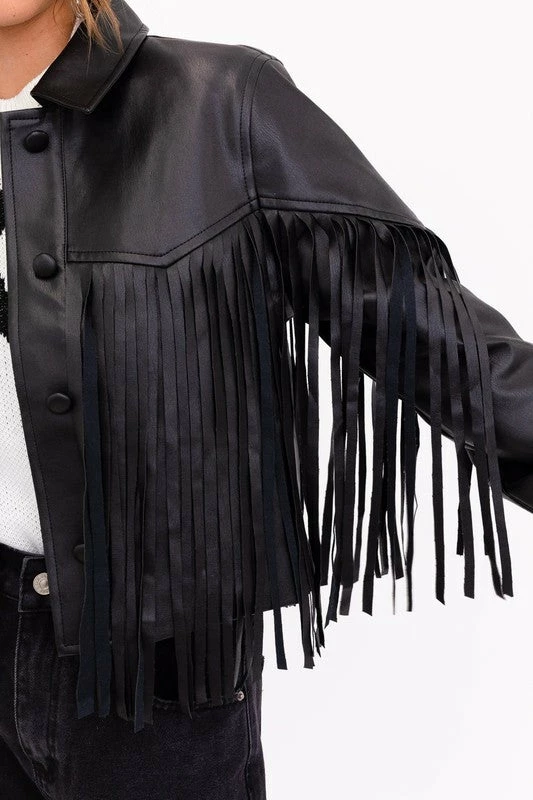 The Verna Vegan Leather Western Fringe Jacket