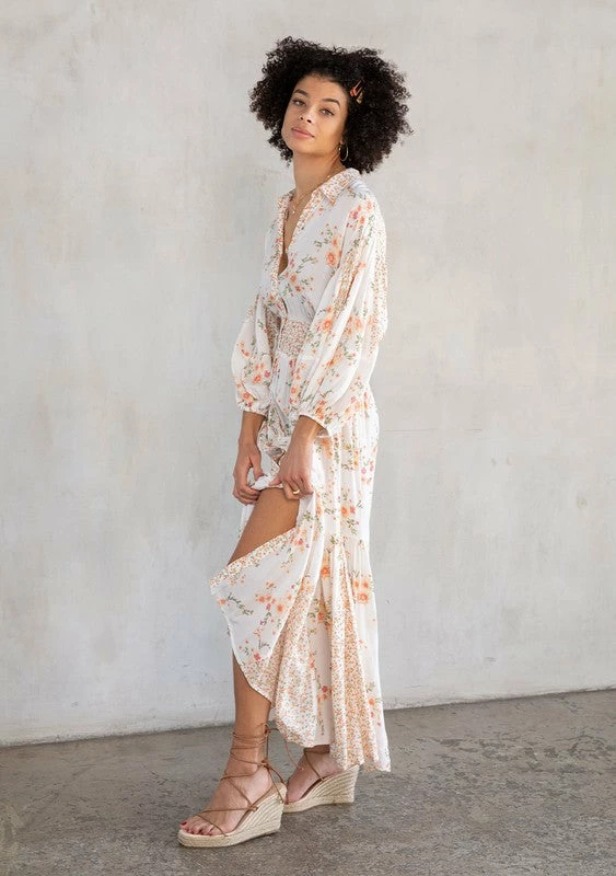 Love Stitch The Starla Natural Bohemian Floral Challis Maxi Dress Dresses