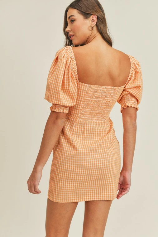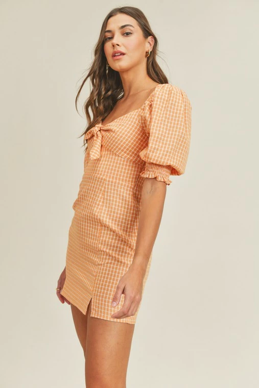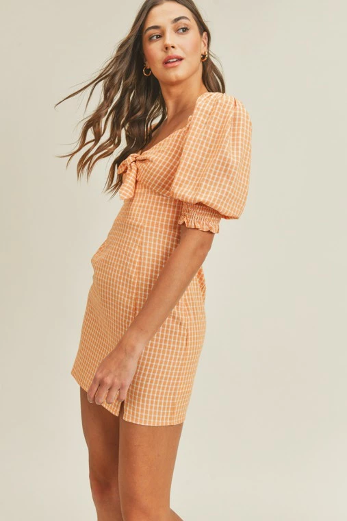 The Ginnie Apricot Gingham Tie Front Mini Dress