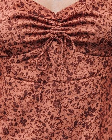 The Renee Rust Floral Print Cutout Mini Dress