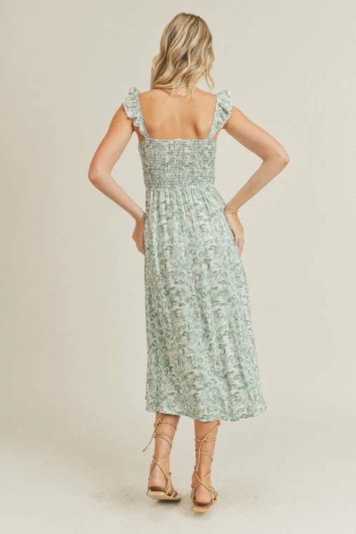 -Floral Print Midi Dress. -Smocked bodice detail. -Side slit. -Sleeveless. Care instructions: HAND WASH COLD, DO NOT BLEACH, DO NOT TUMBLE DRY, DRY FLAT, LOW IRON IF NEEDED.