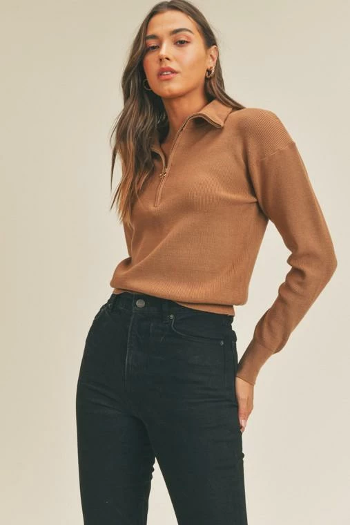 Lush The Katie Coffee Half-Zip Pullover Sweater Tops