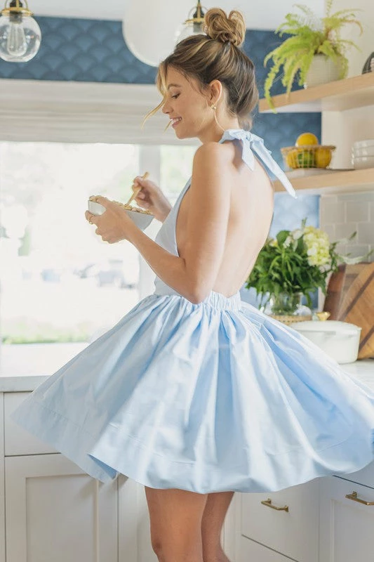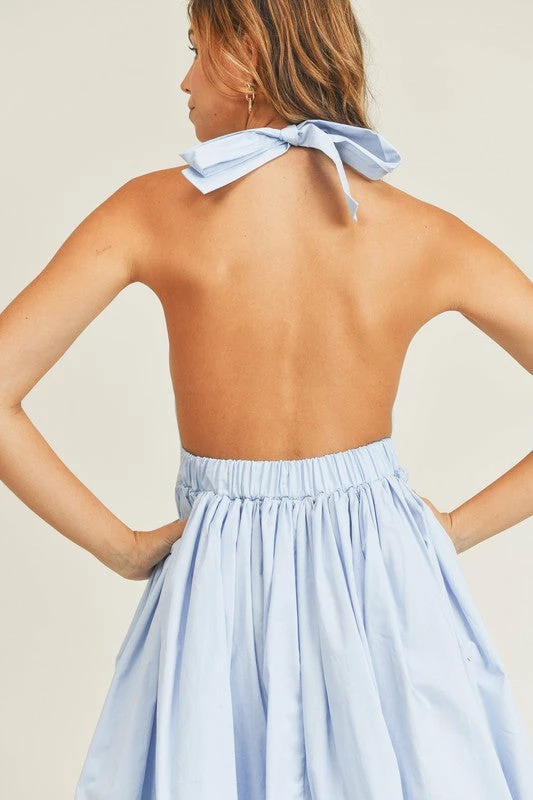 Mable Dresses The Priscilla Poplin Blue Open Back Flared Mini Dress