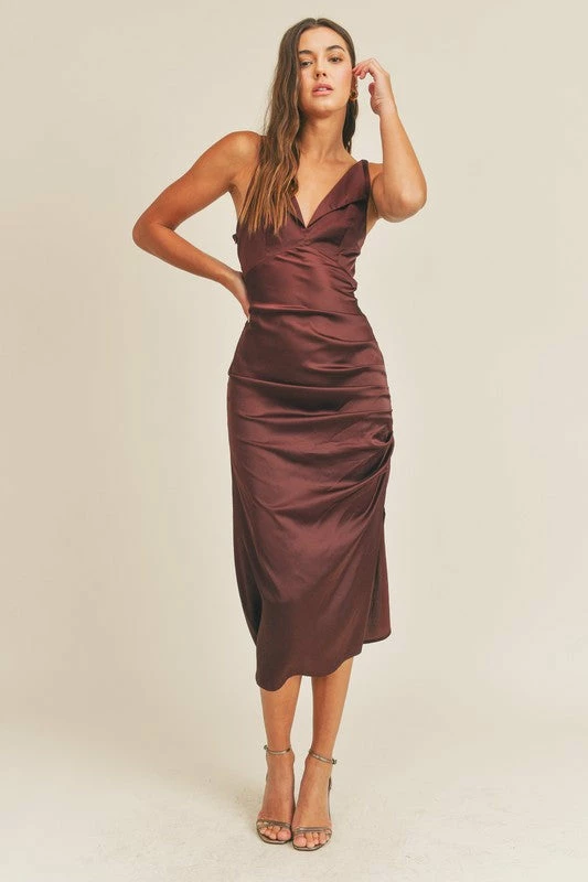 Mable The Macey Satin Ruched Midi Dress Dresses
