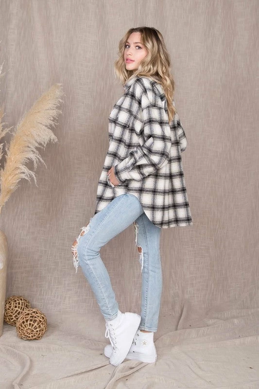 Malibu Bum The Perfect Cream Plaid Shacket Tops