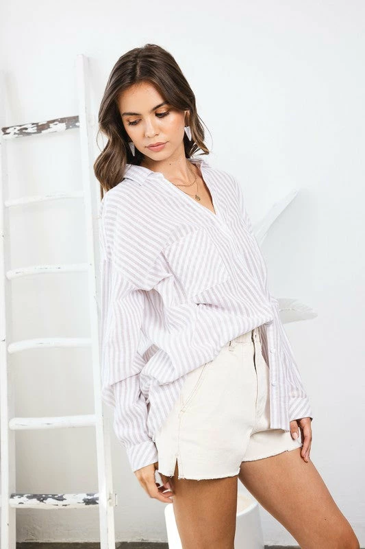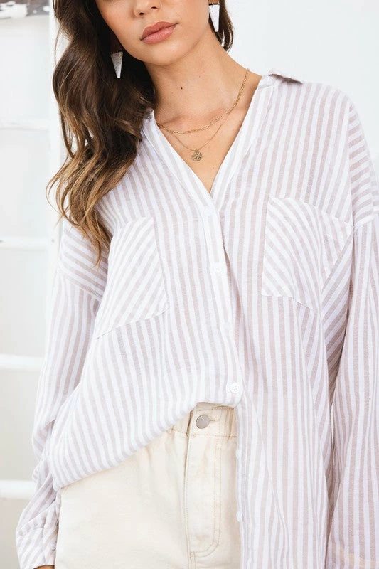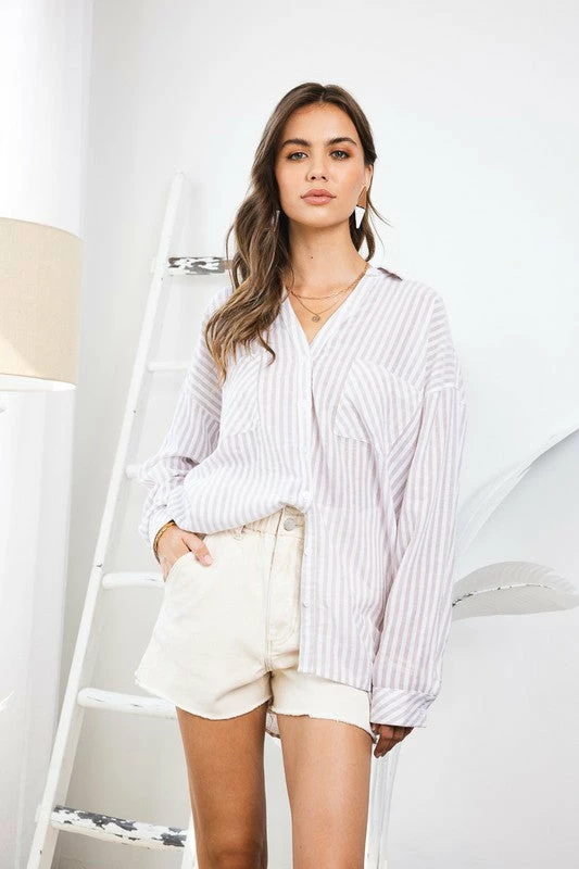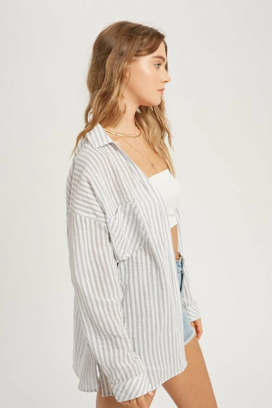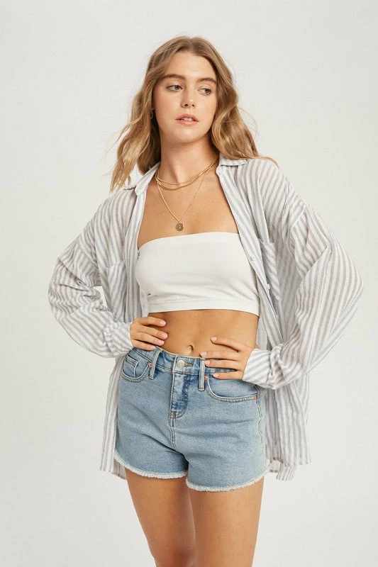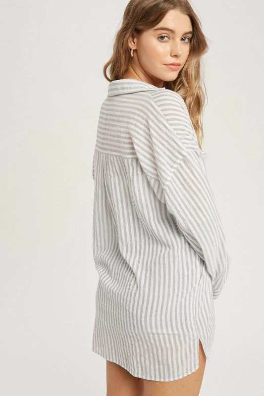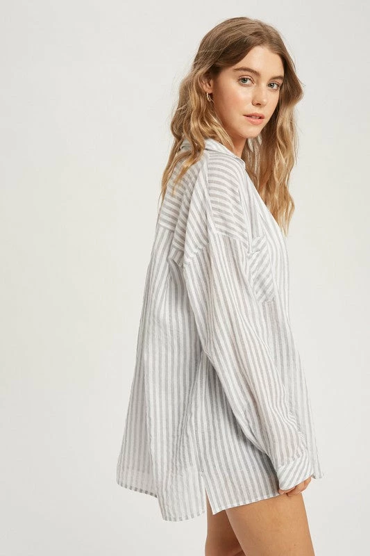 MIOU MUSE The Sadie Gray & White Striped Oxford Shirt