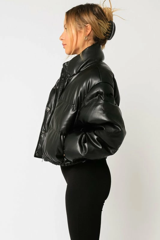 Olivaceous The Brett Black Vegan Leather Puffer Jacket