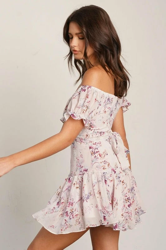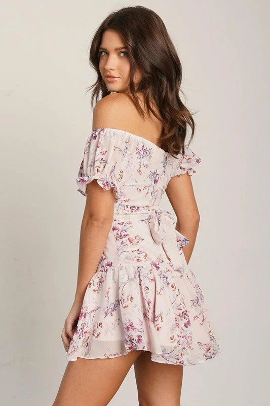 One & Only Collection The Paige Pink Floral Off The Shoulder Mini Dress Dresses