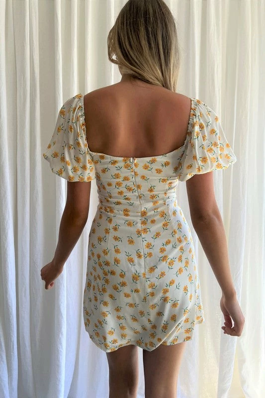 One & Only Collection The You Are My Sunshine Yellow Flower Mini Dress