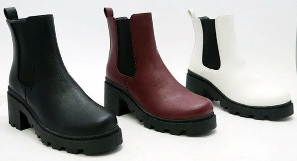WOMENS CHUNKY LUG SOLE HEEL ANKLE CHELSEA BOOTS