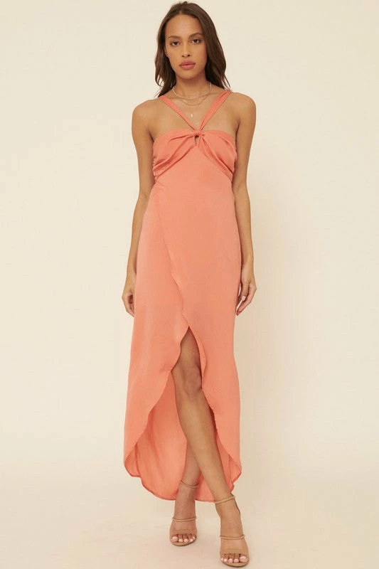 Promesa USA The Cape Cod Coral Satin Tulip Hem Maxi Dress Dresses