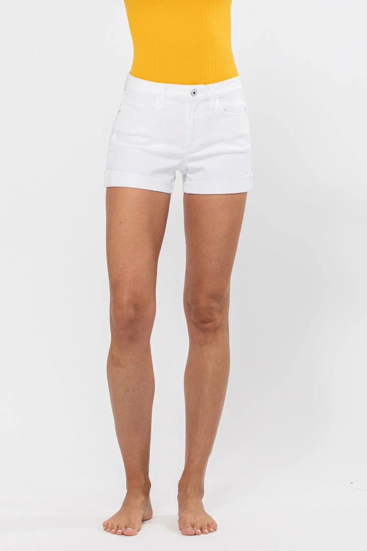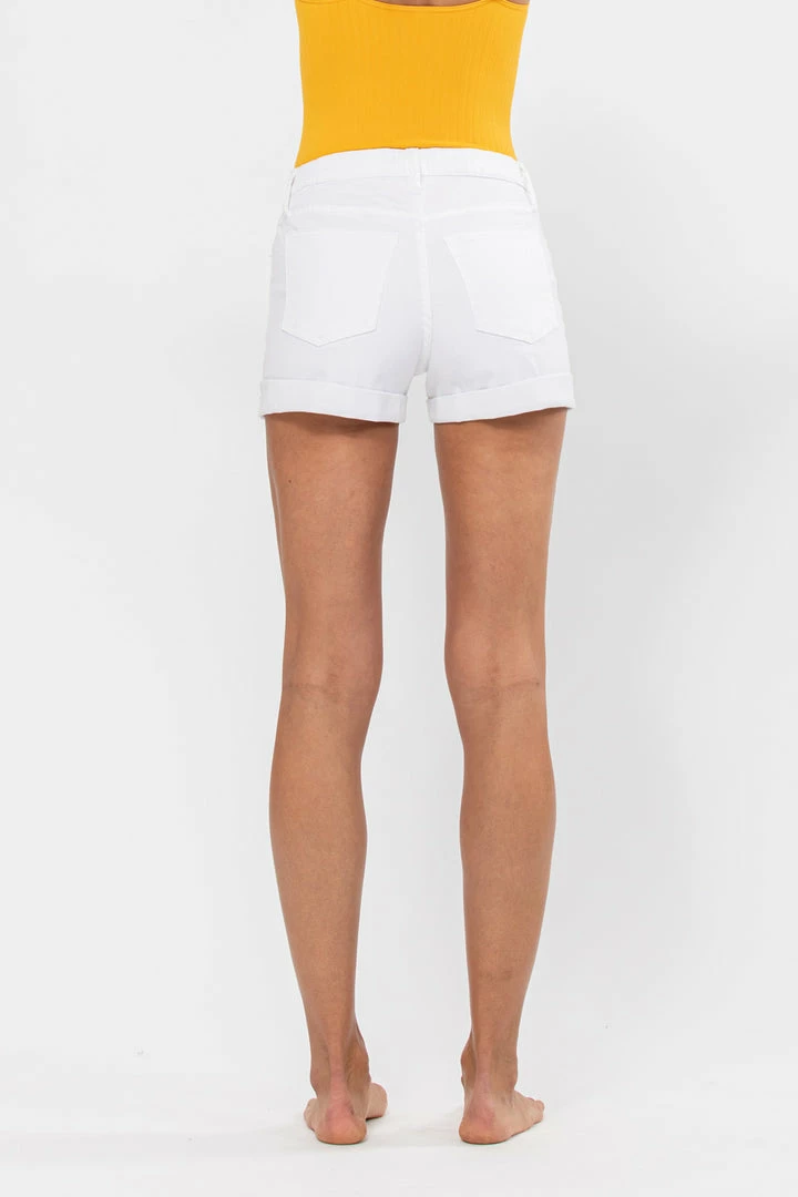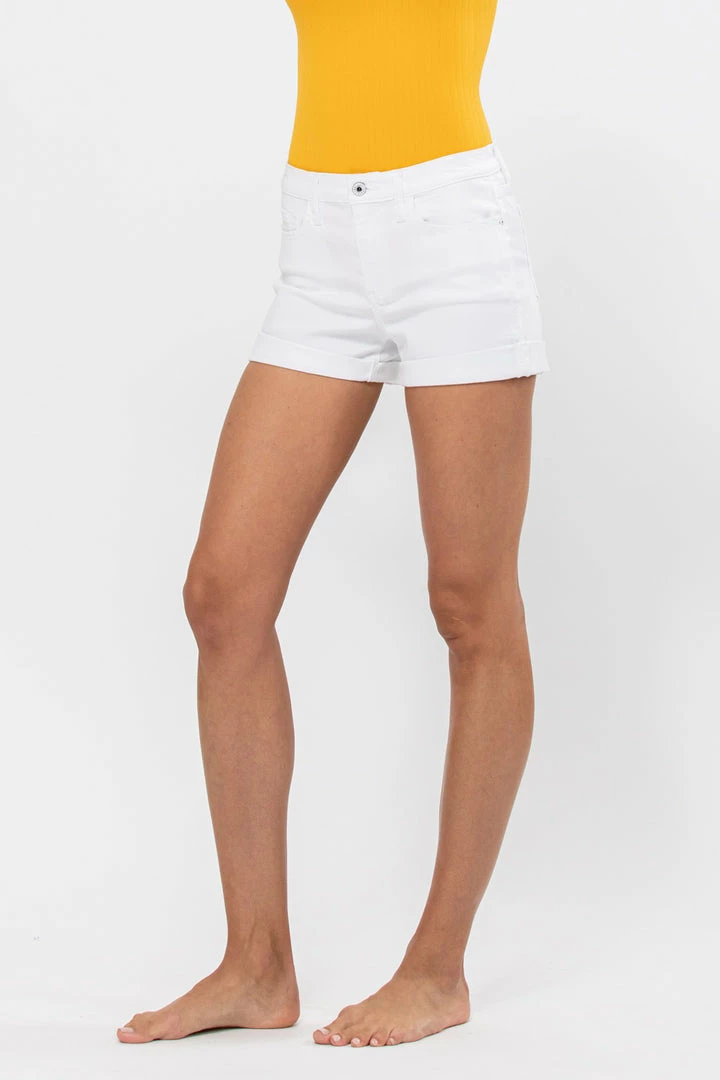 The Marissa White Mid-Rise Shorts with Rolled Cuff Hem