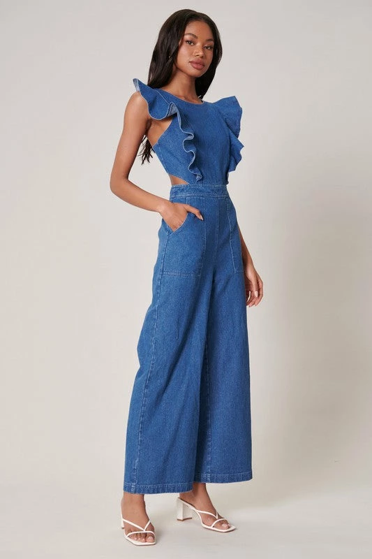 Sugar Lips The Lucki Denim Back Cut Out Jumpsuit Jumpsuits