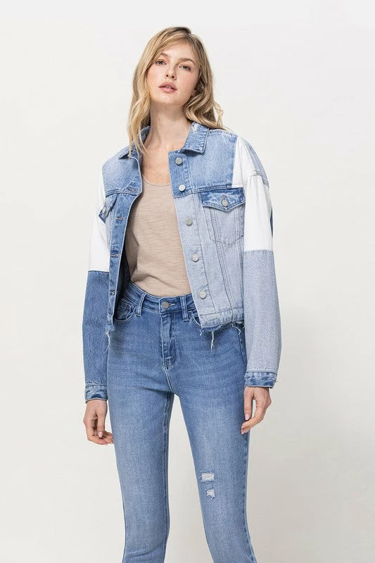 Vervet Tops The Rachel Oversized Patched Denim Jacket